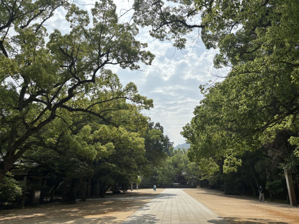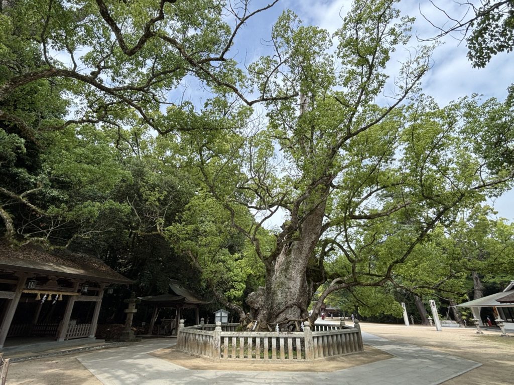 樹齢2600年ともいわれる「神木・大楠」の存在感、そして全国唯一の国宝武具を収蔵する「宝物館」など、見どころも満載です。