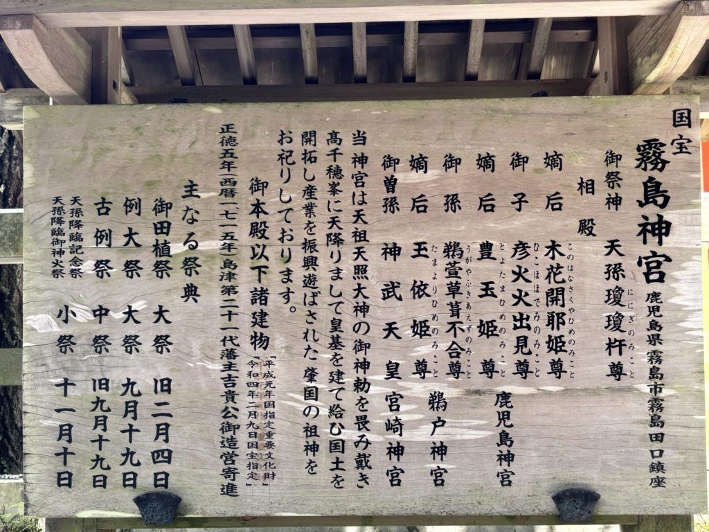 境内には神木の杉や清らかな湧水もあり、霧島の自然と神話の息吹を体感できる場所として、多くの参拝者が訪れます。