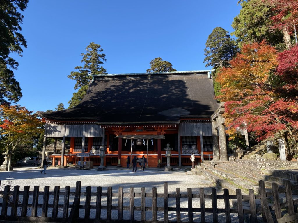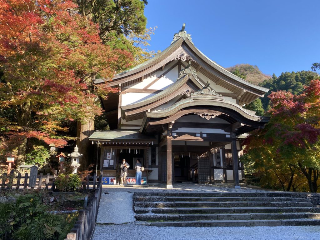 特に秋は紅葉が美しく、燃えるような赤と神社の荘厳さが調和した絶景が広がります。