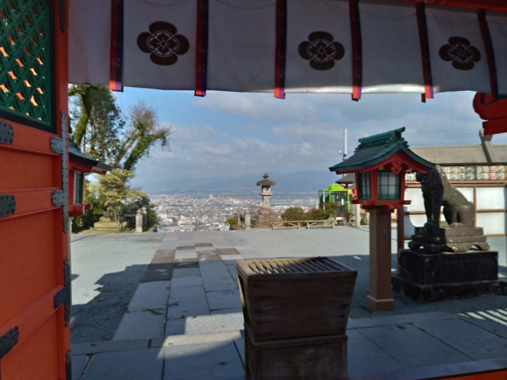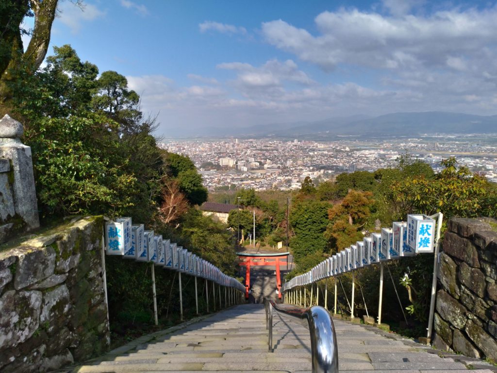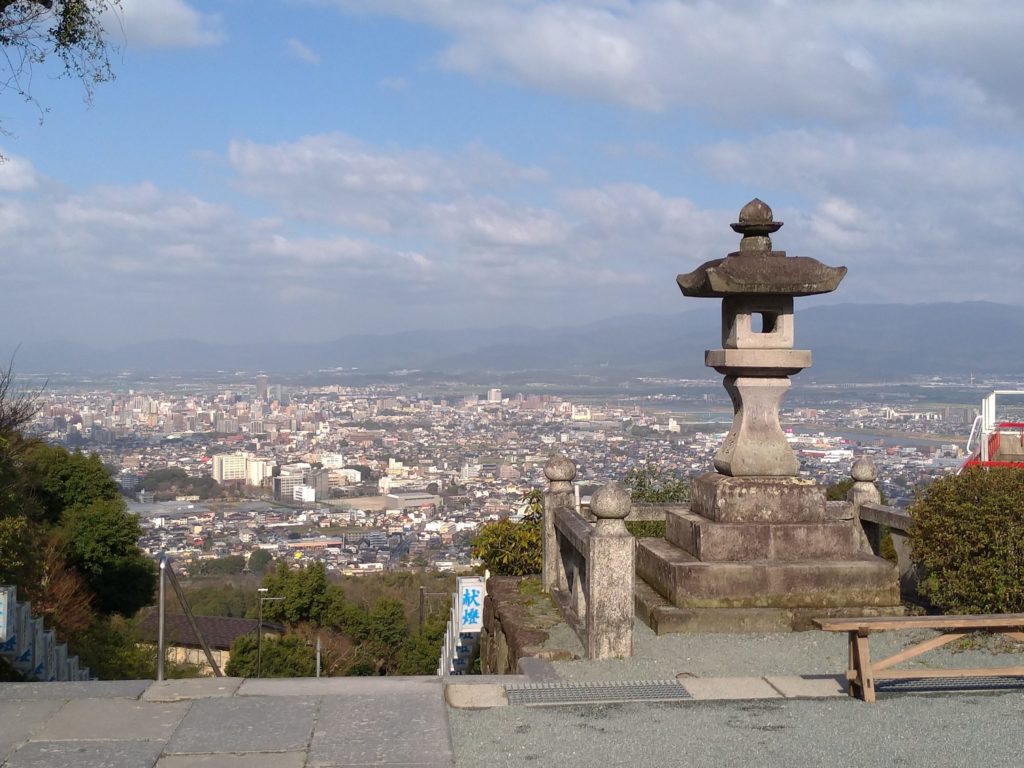 高良大社は標高312mの高良山にあり、境内からは久留米市街地を一望することができます。