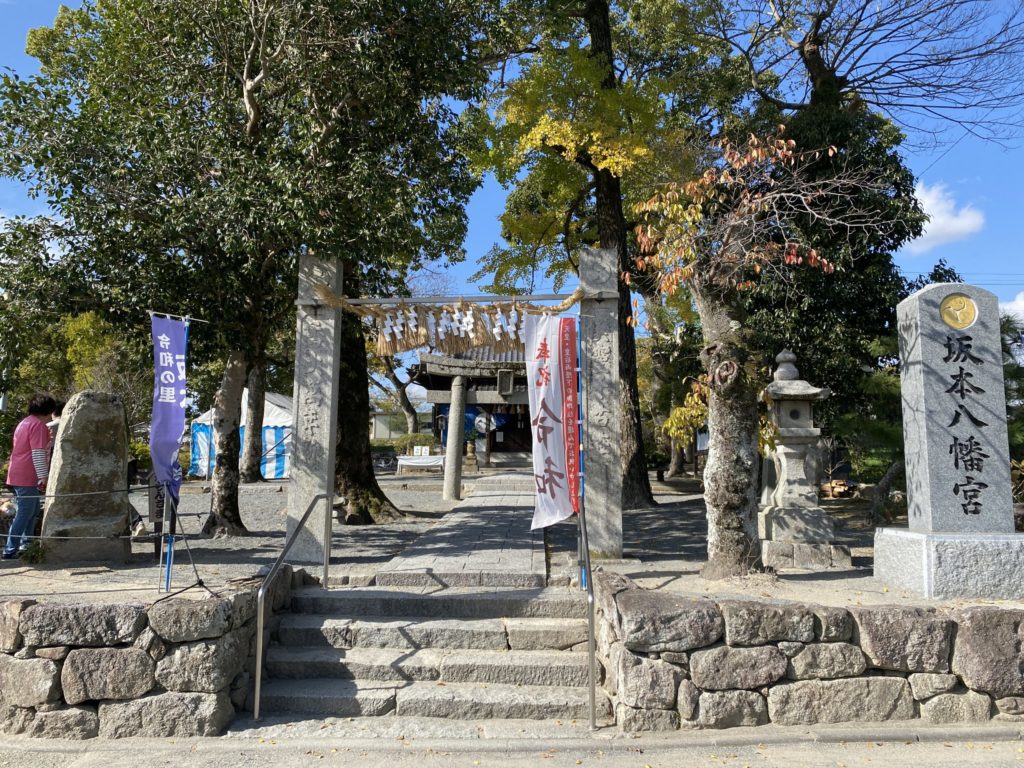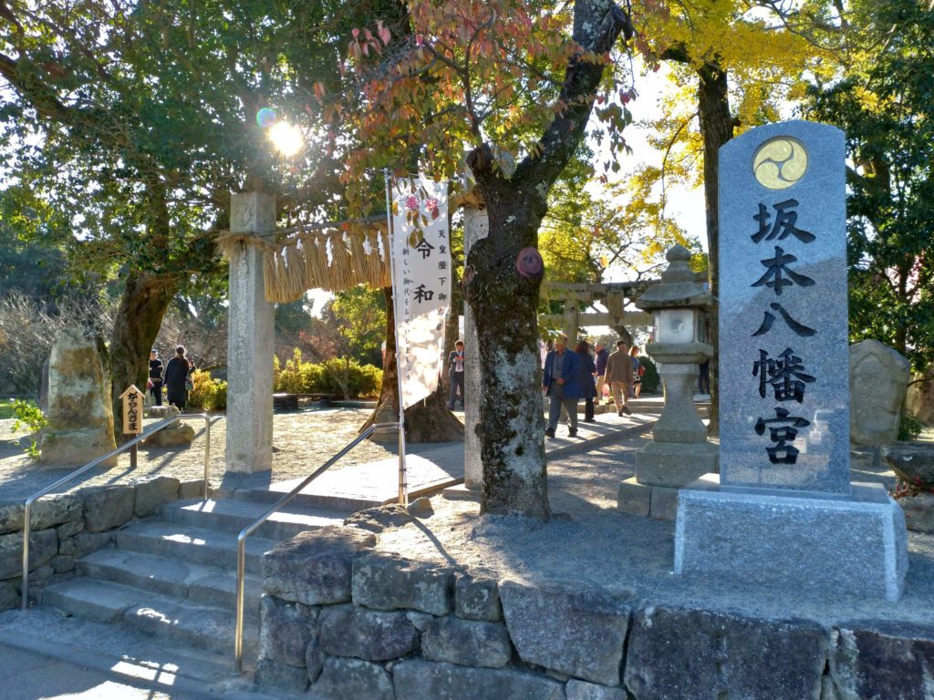 坂本八幡宮は、令和の典拠となった万葉集の歌に登場する「梅花の宴」の舞台とされる場所に近く、歴史を感じる雰囲気に満ちています。
