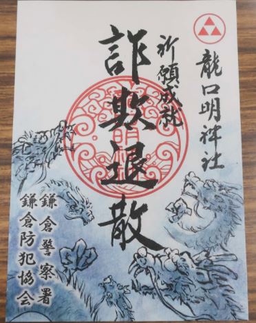 詐欺退散へ「御朱印」 鎌倉最古・龍口明神社で配布 鎌倉署作成
