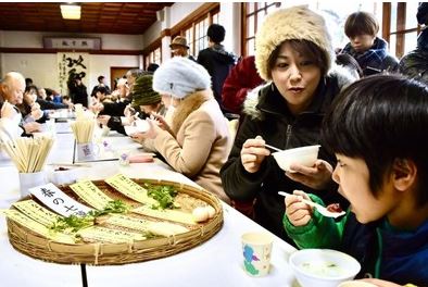 七草がゆ食べて無病息災祈る 金沢の尾山神社