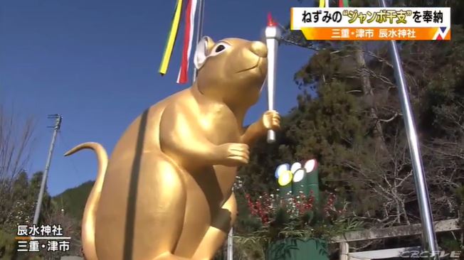津市の辰水神社にジャンボネズミ 高山陣屋ですす払い