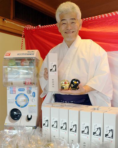 奥田神社 元日に縁起物当たるガチャガチャ設置