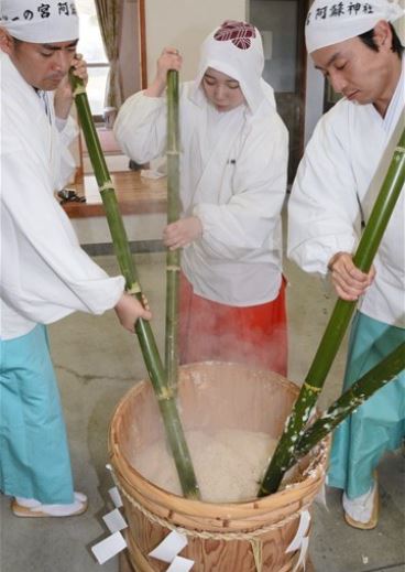 阿蘇神社で3万人分の甘酒仕込み開始! 新年温かく