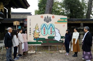 京都・豊国神社 女子大生が絵馬奉納 タケノコかぶったネズミ「撮影スポットに」